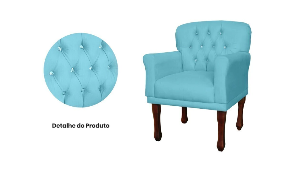 A Poltrona Ester foi desenvolvida para mudar o visual do seu ambiente, é uma composição perfeita que irá trazer aconchego e conforto em um só espaço. Poltrona chave especialmente desenvolvida para te conquistar, com muita elegância e aconchego. Com seu encosto clássico em capitonê, pés madeira estilo retrô, produzida com espuma D-26 de alta durabilidade e maciez, belíssimo acabamento, o toque que falta para a sua decoração.