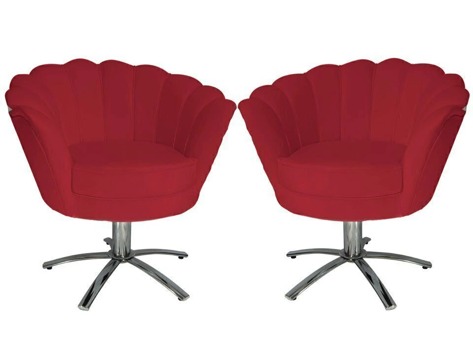 KIT 2 POLTRONAS DECORATIVA PÉTALA BASE GIRATÓRIA METAL