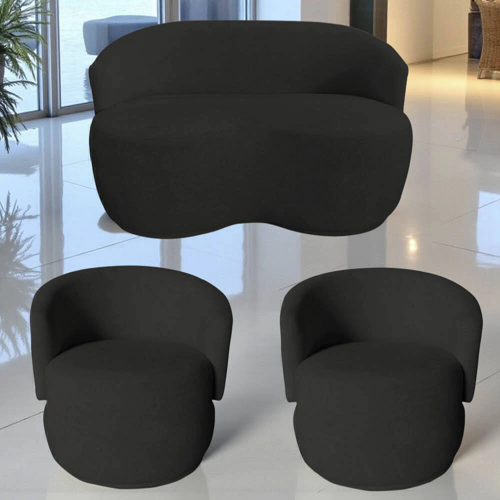 Dê um toque de sofisticação e originalidade ao seu ambiente com o Kit Namoradeira + 2 Poltronas Beatriz Orgânica. Seu design curvo e fluido transmite leveza e modernidade, enquanto o assento espaçoso oferece o conforto ideal para momentos de relaxamento. Versátil e elegante, é perfeita para compor salas de estar, recepções, hall de entrada, clínicas, escritórios, salões de beleza e espaços de leitura. Fabricada com estrutura reforçada e espuma de alta qualidade, garante durabilidade sem abrir mão do estilo. Transforme seu espaço com charme, conforto e personalidade.